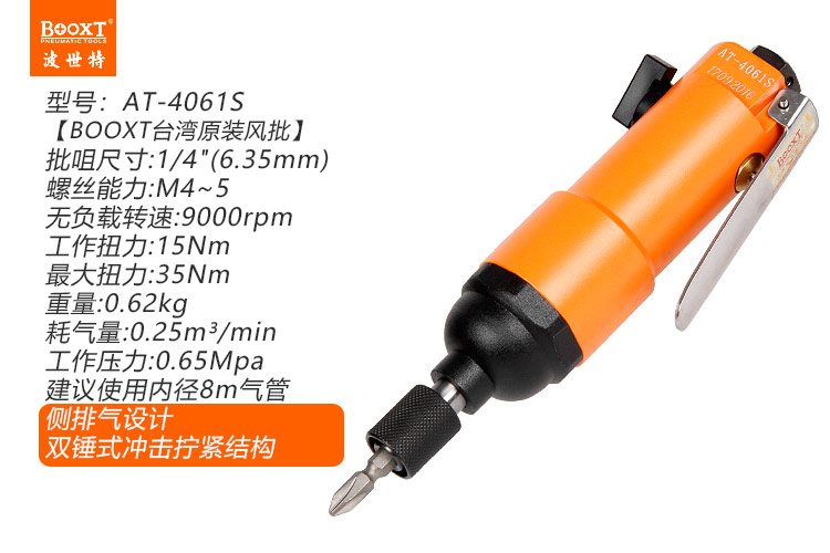 東莞市強(qiáng)勁五金工具有限公司提供臺(tái)灣BOOXT波世特品牌氣動(dòng)工具,氣動(dòng)螺絲刀AT-4061S廠家直銷(xiāo),首件享特價(jià)。咨詢熱線:4008301980