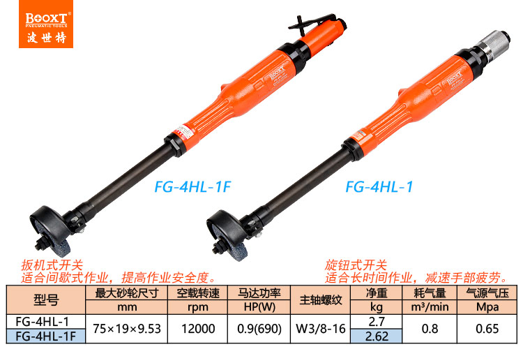 東莞市強勁五金工具有限公司提供臺灣BOOXT波世特品牌氣動工具,氣動加長砂輪機(jī)FG-4HL-1F廠家直銷,首件享特價。咨詢熱線:4008301980