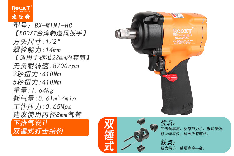 東莞市強(qiáng)勁五金工具有限公司提供臺(tái)灣BOOXT波世特品牌氣動(dòng)工具,輕型氣動(dòng)扳手BX-MINI-HC廠(chǎng)家直銷(xiāo),首件享特價(jià)。咨詢(xún)熱線(xiàn):4008301980