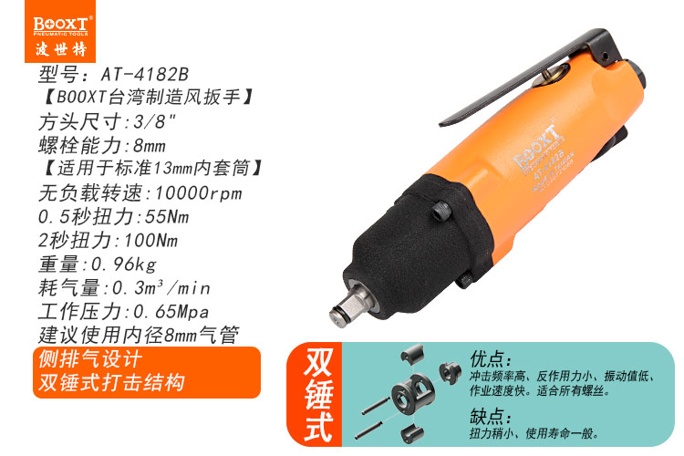 東莞市強(qiáng)勁五金工具有限公司提供臺(tái)灣BOOXT波世特品牌氣動(dòng)工具,直柄迷你氣動(dòng)扳手AT-4182B廠家直銷(xiāo),首件享特價(jià)。咨詢熱線:4008301980