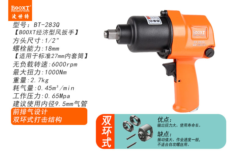 東莞市強(qiáng)勁五金工具有限公司提供臺(tái)灣BOOXT波世特品牌氣動(dòng)工具,氣動(dòng)沖擊扳手BT-283Q廠(chǎng)家直銷(xiāo),首件享特價(jià)。咨詢(xún)熱線(xiàn):4008301980