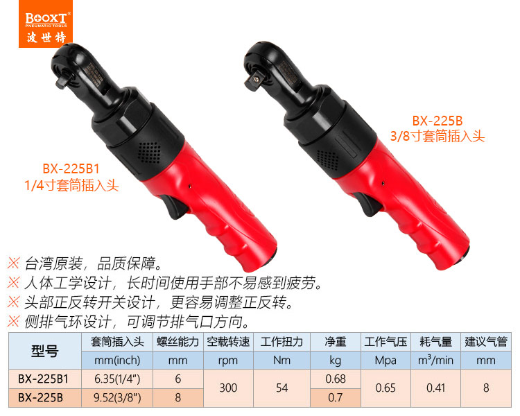 東莞市強勁五金工具有限公司提供臺灣BOOXT波世特品牌氣動工具,氣動棘輪扳手BX-225B廠家直銷,首件享特價。咨詢熱線:4008301980