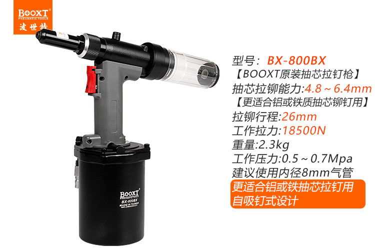 東莞市強(qiáng)勁五金工具有限公司提供臺(tái)灣BOOXT波世特品牌氣動(dòng)工具,自吸式氣動(dòng)拉釘槍BX-800BX廠家直銷,首件享特價(jià)。咨詢熱線:4008301980